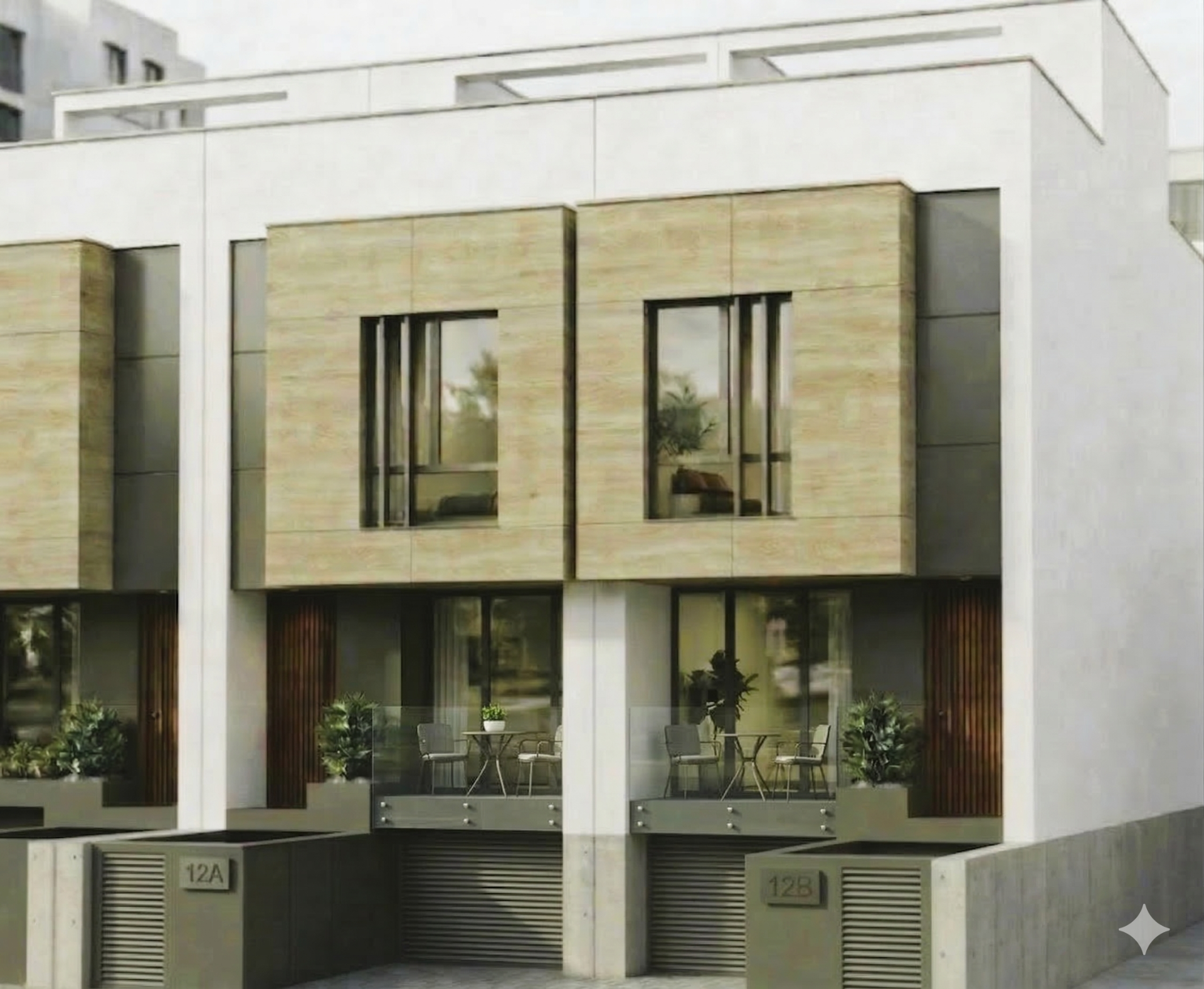 Altas calidades, aplacados en fachada, suelo porcelánico de gran formato o laminado, vidrios de seguridad, escalera de acero, aerotermia para ACS, sanitarios ROCA, inodoros suspendidos, pre-instalación chimenea pellets, puerta automática de garaje, etc....